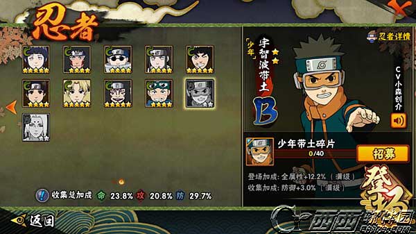 活动内容:活动期间内,B级忍者“宇智波带土”限时上架,欲购从速!