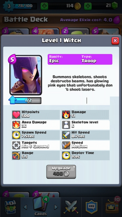 以上就是部落冲突皇室战争clash royale女巫全面解析的内容啦,西西最后提醒大家,女巫前期不实用,生命值过低,等到中期左右来提升生命和攻击属性后使用较为可观。