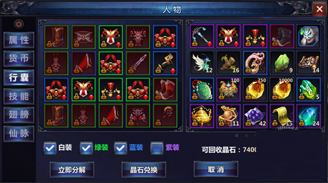 分解从剧情副本之中获得的各种白色、绿色、蓝色装备;