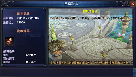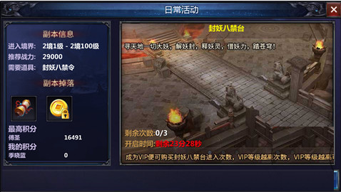 需要封妖八禁令才能进入,每天可以进入3次,VIP可以购买次数;