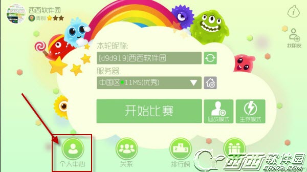 1、首先进入到球球大作战主界面,如下图所示,点击【个人中心】