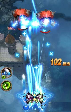 BOSS会出来三只,首先他们会每只身边都有很多蓝色子弹环绕,然后一起发射出来,会变成几个几个一起的竖条,位置不定,我们需要左右上下穿梭才能躲避。然后接着就马上出现方块形的自大再起周围转圈,然后像下雨一样发射出来,速度不快,但是排列很乱,一直一两个方向移动,肯定要被攻击到,大家可以这个时候选择放大招,妥妥的可以三星通关。