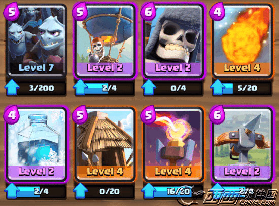 上面的连弩虽然具备杀伤力,但主要还是作为防守,为后面的进攻取得时机,而气球兵+冰冻才是进攻的手段。如果对方防空能力较弱的话,基本一组过去就能带走一半的血。哥布林小兵们也能很好地针对对手的防空兵,同时还能攻塔,所以也是必须带上的。