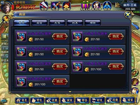 接着就是兑换悬赏神器匣了,这个需要到王城程昱(297,390)处,在这里除了使用悬赏令,还可以使用商会,天书,地术和神册。玩家可以使用悬赏令兑换不同级别的兵器匣,打开后可获得相对应级别的武器,而且有一定的机会获得无双武器。这个玩家可以根据自己的等级进行购买。