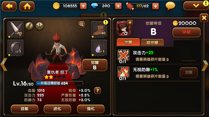觉醒可以提升英雄的各类属性,英雄完成所有的觉醒之后,还可以突破,突破可以全方位的提升英雄的属性。