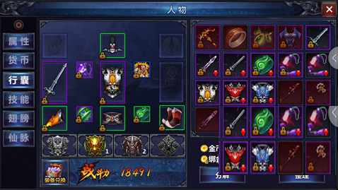 在行囊之中,可以看到角色的装备情况以及获得的所有物品;