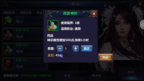 而灵酒之类的BUFF道具对于平民玩家来说,没有太大的购买必要。