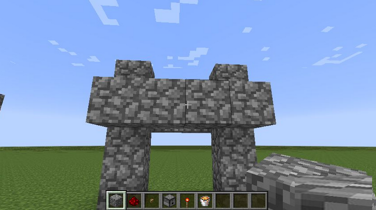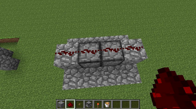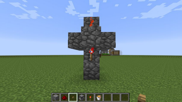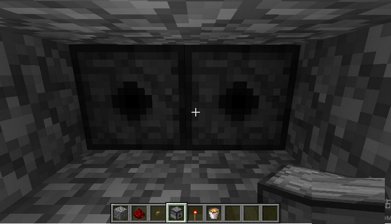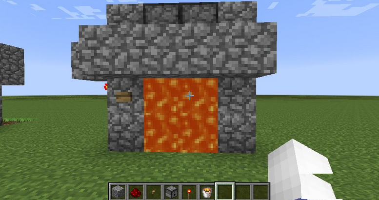 再按一下开关,岩浆门会自己关闭,玩家可以自己做一下们的装饰,小编就随便做了下。