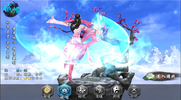 天王属于标准的坦克类型,适合副本与PK的时候带头冲锋。逍遥适合喜欢爆发输出的玩家选择,但是对操作有一定要求。桃花适合风筝输出,只要你操作够好,你绝对是输出最高的,走位如果不佳,也是死得最快的门派。峨眉适合喜欢辅助的玩家来选,躲在旁边放放技能、血,岂不是最舒服的职业吗?不过武当上手难度比较简单,而且门派技能非常飘逸潇洒,相信很多有着剑侠情节的玩家会非常喜欢。