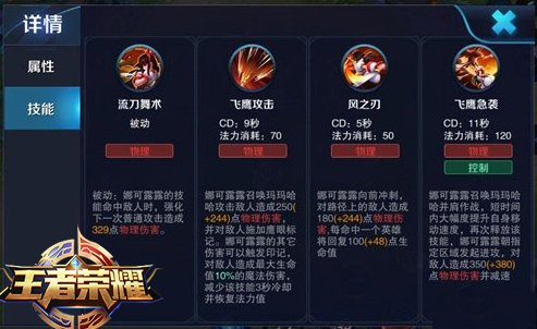 1、【飞鹰攻击】不仅仅可以在线上消耗目标,需要注意的是其附加的鹰眼标记能够为娜可露露带来续航效果。在对战中,在使用【飞鹰攻击】时,要注意【风之刃】和【飞鹰急袭】的CD,技能施放衔接好,可以消耗目标,同时回复自己的法力和生命值。