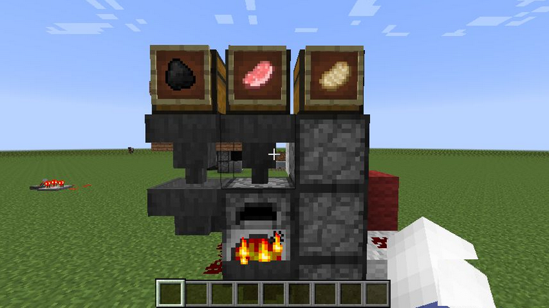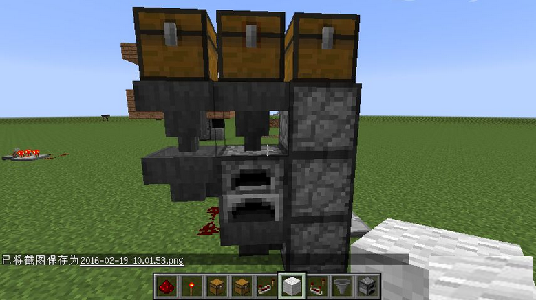放好熔炉、漏斗和箱子。(之所以要陷阱箱下面就能看到了)