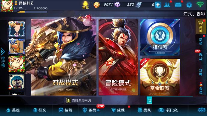 上图是超级战场的主界面,下图是王者荣耀的主界面。