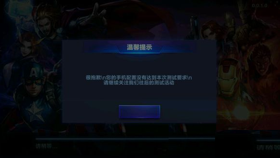 上图所示,许多玩家进入游戏的时候提示您的手机配置没有达到测试要求。