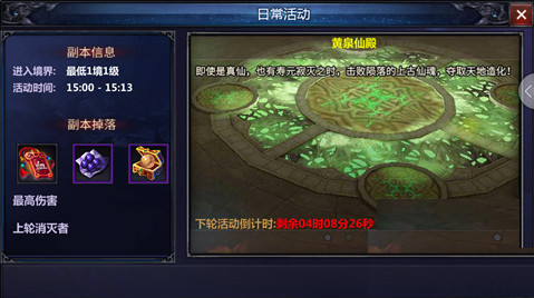 黄泉仙殿每天只能够进入一次,在下午3点~3点13位活动时间;