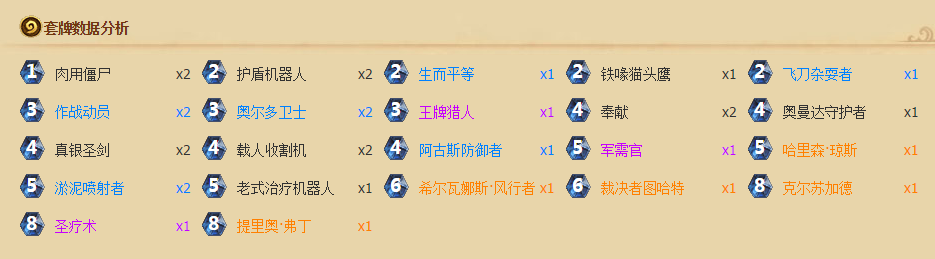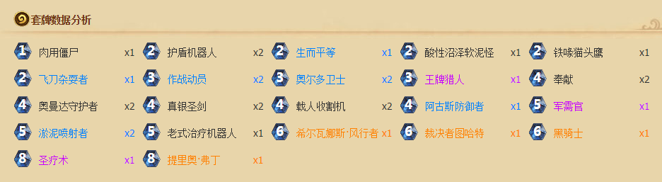 1、我微调的针对当前环境的骑士套。针对速攻职业,打慢速就靠图哈特慢慢消耗。