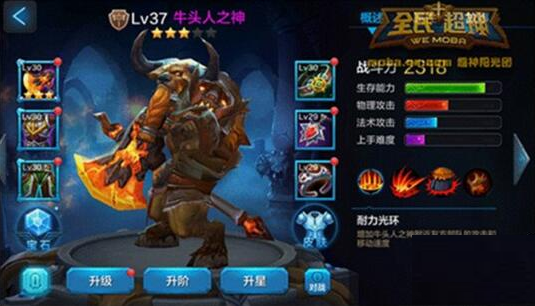 突进肉盾英雄,团战的先锋。具有最高的初始血量与护甲。有了牛头的辅助,及时保护阿玉,给阿玉充分的输出空间,阿玉与牛头人在55中可以双人下路,可完爆对面下路任意组合,很好的护花使者!
