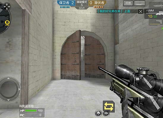 在这里我就要提出本张地图的特殊性所在,本张地图的爆点与敌方复活点的位置是非常之近,所以爆点区的防守是非常尤为重要,并且在对于爆点进行防守,需要注意事项也是非常之多,虽然爆点攻击距离较短,但是所能到达爆点的路线并不是仅仅一条,所以在对于爆点进行防守的时候难度也是会加大,如我上图所示,这是一个A爆点区的一个防守,在你拿狙对A爆点进行防守的一个站位问题,上方的一个位置是敌方玩家直接可以从中路区来进行突击的一个位置,然而我狙击枪所对准的一个位置是敌方复活点右翼冲击的一个点位,但是在对于A爆点的一个防守我是建议大家站在下方的一个位置来对对进攻右翼玩家的一个防守点,这样既可以制衡并且大大提高了自己的生存率,如果地方玩家从上方的拐角位置进行冲击的话或者安包的话我们也是可以达到一个出奇制敌的一个效果!