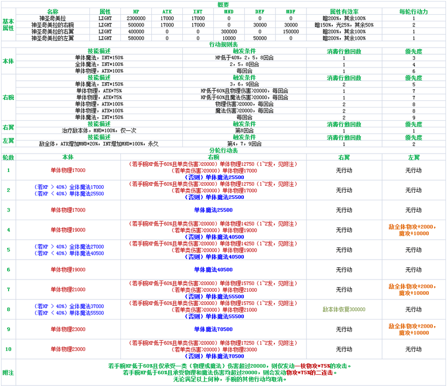 左翼HP不变,右翼(15W魔防)的HP大幅提升(22万→40万),击破右翼需要高攻击破防刀,或者物理刀。