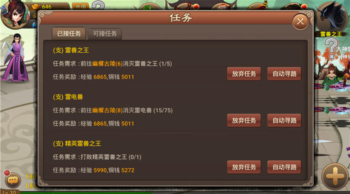 通过完成系统的主线和支线任务,玩家都是可以得到大量的铜钱奖励的。