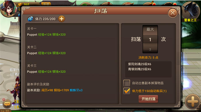通过副本战斗,通关之后就可以都得到大量的经验值奖励。
