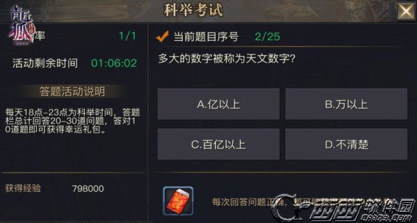 1.科举考试中答对一道题获得大量经验,对于一个低等级的玩家来说,假设20道题全部答对,那么每天参加科举考试也许刚好足够升一级。