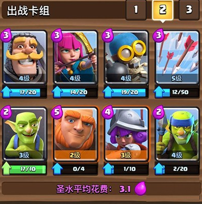 (如果玩家前期抽到了骷髅军团可以适当地替代一下近战的哥布林,而如果玩家抽到的是女巫可以替代下弓箭手。)