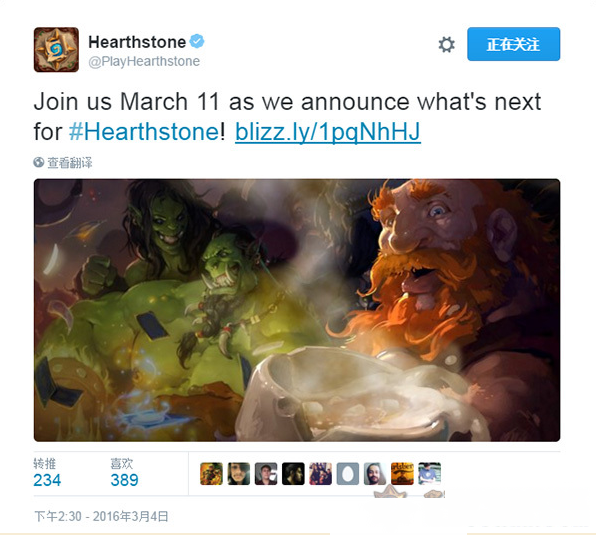 炉石传说官推在今天公布了新版本预告时间:3月11日我们就能了解到炉石传说新版本的内容了!