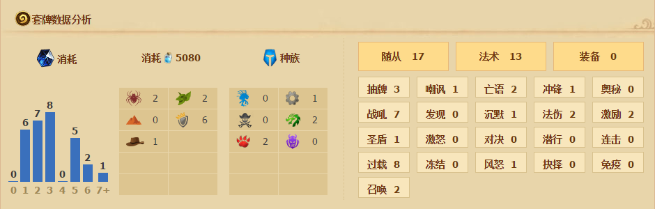 佛祖骑:佛祖骑其实还是挺多的,最后50把少了点,你有3个aoe能摸到就比较稳,王牌崩佛祖碰碰,呱佛祖丁丁都是极好的。就是奥秘的触发一定要有技巧,有时候无视他其实是更好的选择,这样他的场攻不高,让他主动和你交换。5费雷霆崖一扔,对面没有奥达曼就得全家老小来换了,不然就电疗教做人。