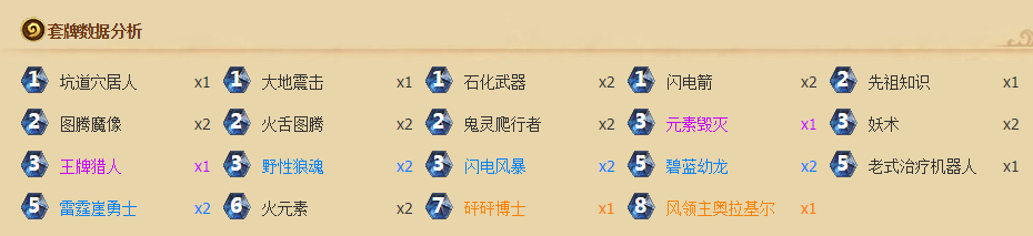 萨满新增的aoe。天梯里面还是有不少潜伏的奴隶战的,还在担心么有法强电疗打不了3的尴尬了吗。你需要元素毁灭来一发。