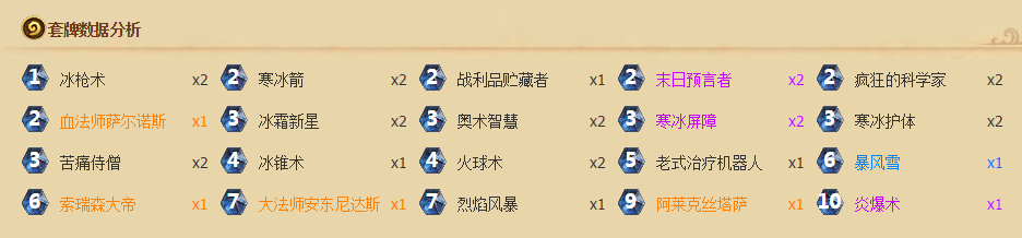 这套冰法卡组没啥好说的,常规红龙炎爆冰,没有特殊设计。赶紧来瞻仰下这世界第一的风采吧!