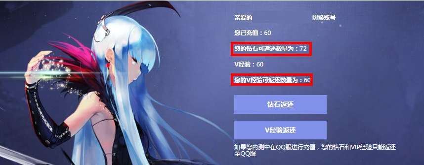 2.查询您在历次删档测试中的充值金额以及对应可以获得的钻石返还额度以及VIP经验值