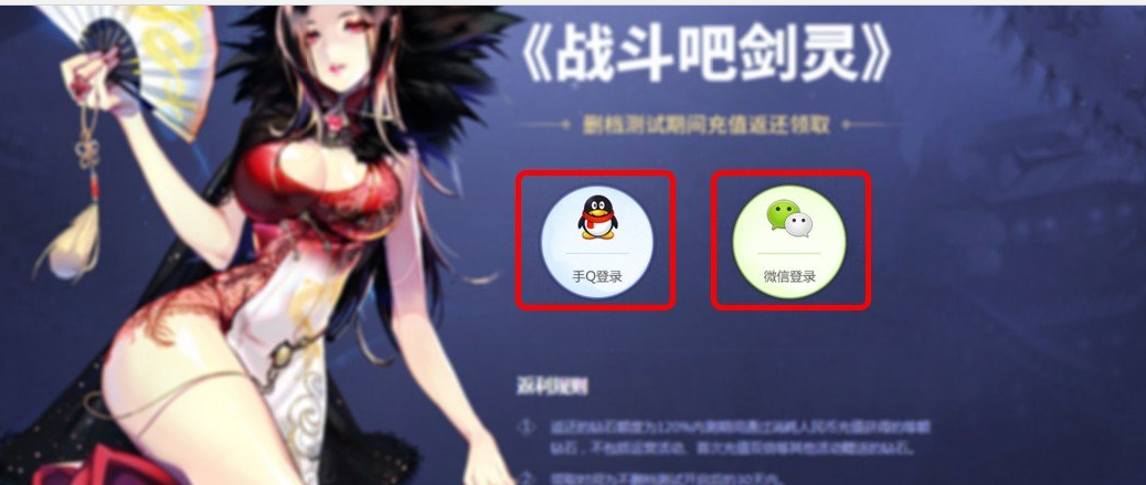 1.进入删档测试充值返还领取页面,选择您的登陆方式