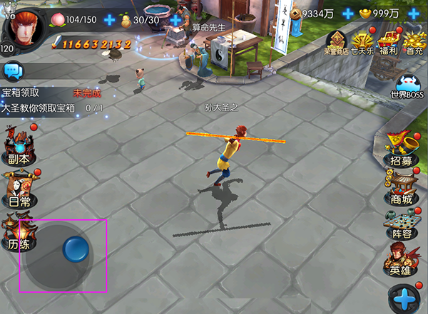 在界面中,左边靠下,猴砸看到的是副本、日常和历练三个玩法入口。