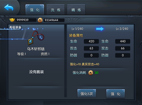 装备洗炼,则是消耗装备洗炼石,提升装备的品质。同样地,装备洗炼也能大幅度提升装备的属性,甚至是翻倍地提升。
