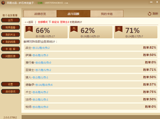 月初冲天梯,5级以前我基本什么卡组都使用过了,到了5级以后本来想习惯性的使用中慢速卡组用稳定的胜率冲上去,结果发现毒瘤卡组和快攻的比例实在是太大了,特别是不讲道理的咆哮德、奴隶战、动物园太多了,所以在3级的时候我尝试使用这套非原创的蛋蛋佛祖骑冲上了传说,卡组胜率和对战情况如下,顺便说说打法。