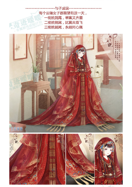 大家喜爱的中式婚纱终于来啦~相信许多玩家对与子成说的妆容有一定的疑惑,明明出家是件喜事,为什么要哭呢~这就和传统文化有关了。其中与子成说套装中展示的“红盖头”和“哭嫁”都是我们的民族传统婚姻习俗。
