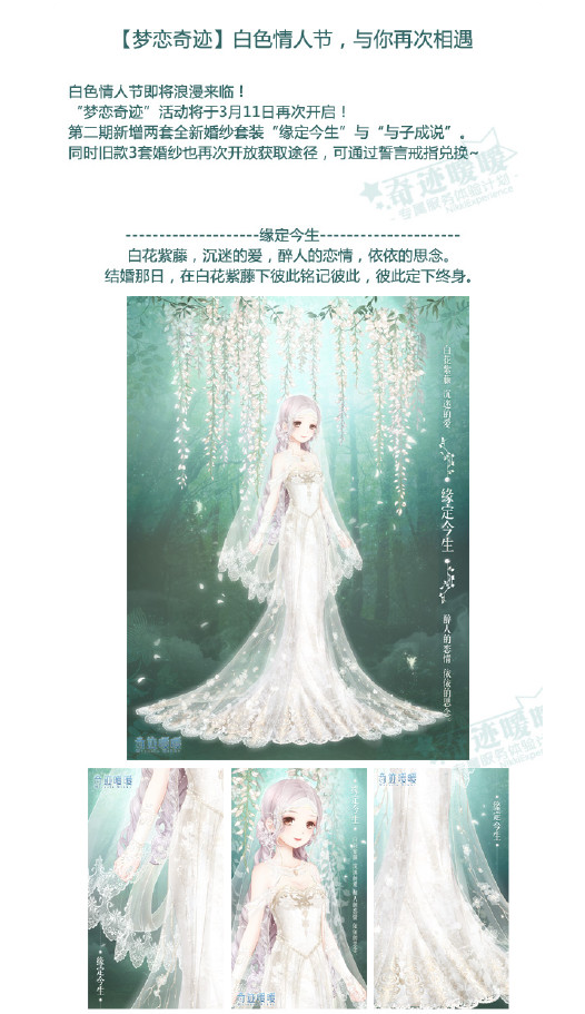 同时旧款三套婚纱再次开放获取途径,可通过誓言戒指兑换。