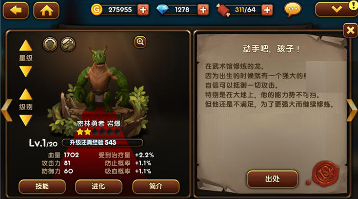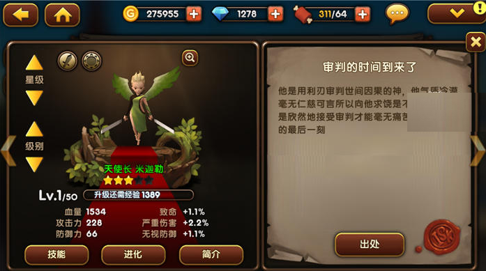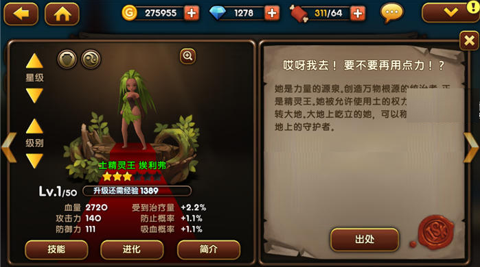 自动技能:增加土属性队员的的防御力,让前排更加的肉。