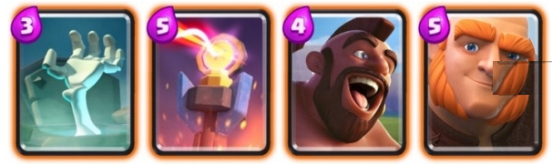 上面这几个是A4以上竞技场玩家们常用的,面对地狱之塔和骷髅墓碑的时候可以快速拆掉,防守时候可以处理巨人、骑士、野猪骑士等。