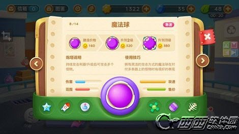 拥有灵活的攻击方式,魔法球在对付多条路上的怪物时有很好的表现。