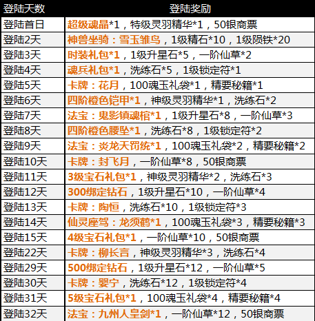 服务器开启后,登陆满一定天数即可获取新手豪礼,累计登陆天数越多,奖励越好。