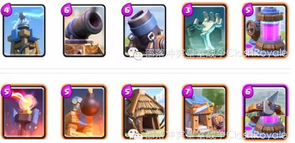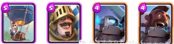 这四张卡牌都是对建筑构成极大威胁的卡牌,其中气球兵配合冰冻法术,可以一波推掉护卫塔;王子在冲锋后,如果无单位阻挡,第一下攻击所造成的双倍伤害,对塔的伤害也是极其巨大的;迷你皮卡类似于王子,单体爆发伤害非常可观;最后是野猪骑士,虽然爆发能力不及前三张卡牌,但是它的攻击目标是建筑,且移动速度快,还可以直接跳跃河道,配合冰冻法术效果显著。