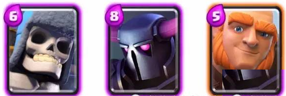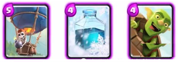 这6张史诗卡牌中,一般都会有2种以上,配合之前推荐的6张卡牌,可以组成一套不错的上分卡组。如果拥有X连弩,可以考虑选择这张做为固定的核心卡牌,因为X连弩往往能在消耗战中找到机会“偷掉”对方的护卫塔。最后一张的话,比较推荐用空中爆发的气球兵,因为气球兵相比于王子的突进,不会受到骷髅兵或者野蛮人的干扰,且爆发输出高。所以,在这个阶段,我们可以总结出一套容易组成的的兼顾防守与输出的上分卡组。