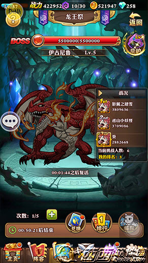 1、玩家在35级可以开启龙王祭系统, 龙王祭相当于世界BOSS副本,每天在固定时间开放,和全服玩家一起斩杀随机出现的龙。BOSS等级随着每1分多钟后的刷新递增。