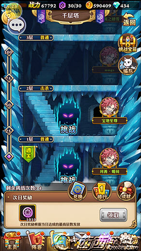 每天有六次 挑战机会,VIP级数越高能增加的次数也越多。和竞技场一样,每晚九点结算所闯层数也有对应奖励可拿。