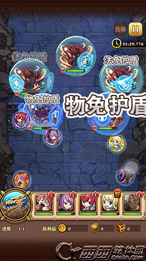 2、【死斗】模式下的高防御BOSS组合开启的法免护盾、物免护盾令此类回合成为一场消耗战,编队时要注意避免全体上阵单一物攻、法攻类弹珠。