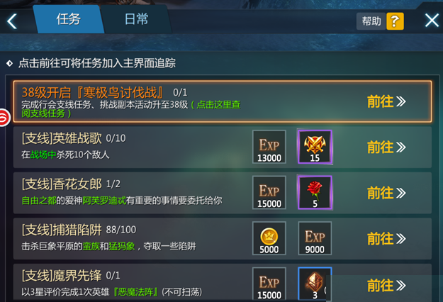 我们的一些支线任务也能获得一些金币的奖励,虽然不是很多,但是都是以刷怪任务为主,我们可以直接挂机刷怪完成任务就可以了。