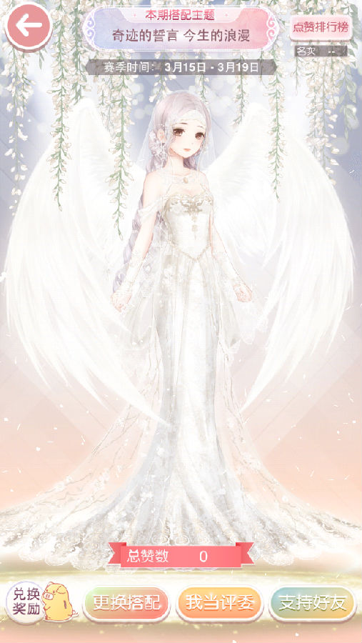 昨天刚刚过完3月14日的白色情人节,今天奇迹暖暖的搭配评选赛就正式的更新了新的赛事,带来了一组“奇迹的誓言 今生的浪漫”的搭配主题,这个主题看名字就知道是很适合婚纱搭配的一套主题了,那么想要在“奇迹的誓言 今生的浪漫”的主题中获得更高的点赞数,就要用好看的婚纱来搭配了,一起来详细的看一看要如何高分搭配这一次白色情人节后的奇迹暖暖的主题吧。