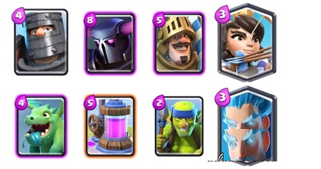 皮卡推进流:JY采用的皮卡推进流卡组暂时占据了IG部落的最高杯。这个卡组同样是以皮卡超人作为推进核心,与全明星套牌不同的是,这套牌采用了更多的低费和召唤单位,双哥布林能快速制造输出,而女巫提供炮灰单位和远程范围伤害,火枪手远程输出点杀,在攻击中形成一波全面的人海攻势。因为套牌在防御的时候缺乏有效的阻挡,所以特斯拉电磁塔就尤为关键。套牌弱点是除了皮卡肉盾不足,如果在推进中被风筝或者被切入后排,攻击容易受阻。