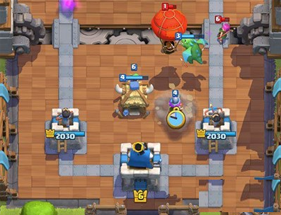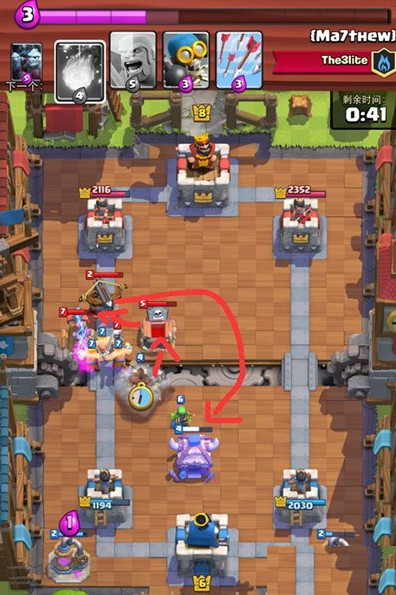 如果看到对手前置电塔直接一波拆了是比较容易的。如果让对手摆好防御工事,那只能黄毛+野猪拼一枪了,注意火球炸X弩与他的解卡。